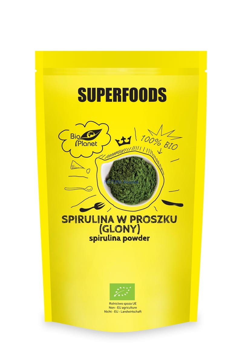 - Ekologiczna spirulina to rodzaj zielononiebieskiej mikroalgi o kształcie spirali. Ta słodkowodna alga dostępna w formie sproszkowanej pozyskiwana jest z najwyższej jakości glonów z kontrolowanych upraw. Jej nazwa pochodzi od spiralnego kształtu, jaki naturalnie przyjmuje. Zawiera naturalny barwnik chlorofil. Jest źródłem błonnika oraz wyróżnia się bardzo wysoką zawartością pełnowartościowego białka roślinnego.